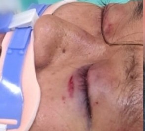公開された写真には、激しい暴行の痕跡が生々しく残されていた。まぶたやこめかみ、鼻筋には黒ずんだあざがはっきりと残り、耳の内部にも出血の跡が確認されるなど、深刻な状態がうかがえる。