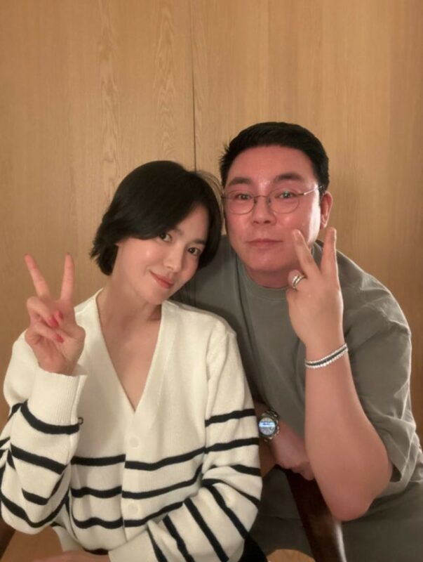 また別の写真でソン・ヘギョは、チェ・ハンソクと仲良く寄り添い、認証ショットを残している。