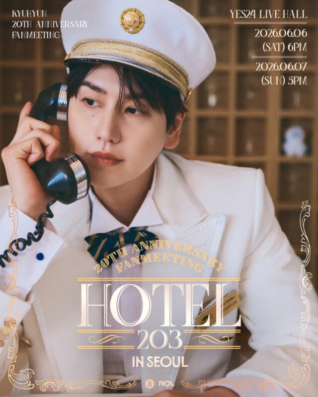 キュヒョンは本日(7日)午後2時、公式SNSを通じて単独ファンミーティング「キュヒョン(KYUHYUN)20th Anniversary Fanmeeting IN SEOUL」(以下「Hotel 203」)のポスターを掲載した。