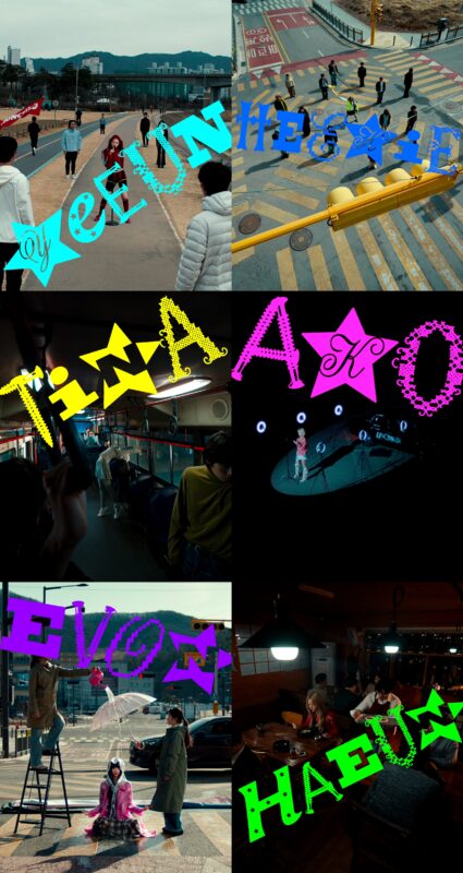 ランニングトラックを逆走してマイクを手にするリードボーカルのパク・イェウンは、クールで洗練されたイメージでUNCHILDの独自の方向性を体現。交通安全ボランティアに扮し、横断歩道でダイナミックなフラッグダンスを披露するリーダー兼メインラッパーのヒキは、音楽のコアを担うメンバーらしい圧倒的なステージ掌握力を予感させた。バスの中で独創的かつしなやかなバレエ動作を披露した中国出身のティナが、華やかなビジュアルの裏に隠されたギャップのある魅力を見せると、スポットライトを浴びながら車から降りる日本出身のアコは、持ち前のユニークなリアクションでチーム内の“バイラルトリガー”として弾ける魅力を発揮。