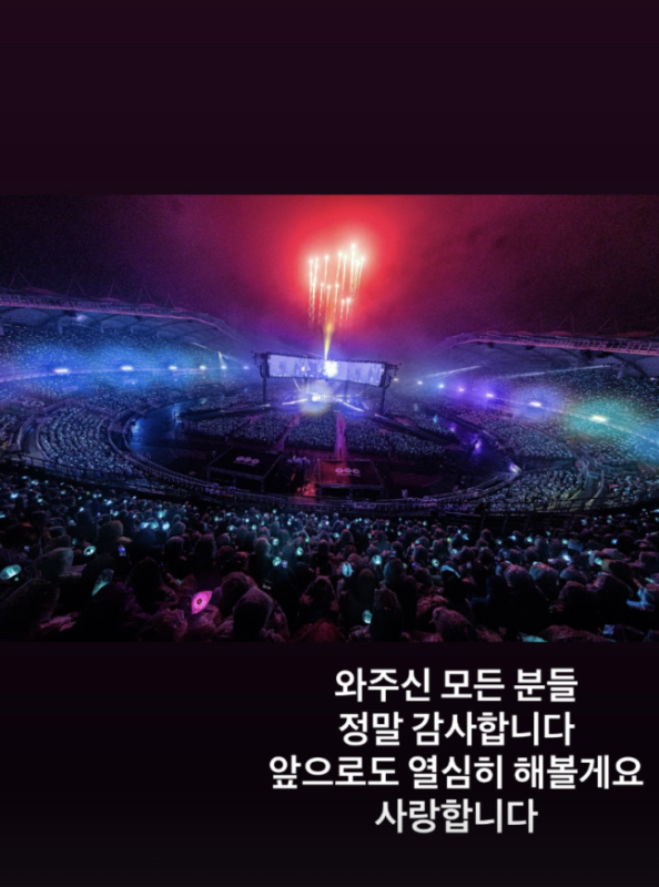 Jiminは残念さも表した。彼はファンの反応をうかがったように「雨もとてもたくさん降って。今回、あえてダンスを減らしてまでこの演出を一度新しくやってみたくて努力したが、火薬の煙もうまくなくならず、そうした部分があって(残念だった)。天気のせいで風も吹かず、もともとは登場したとき(スモッグが)きちんとなくなっていた。それも少し残念だ」と説明した。