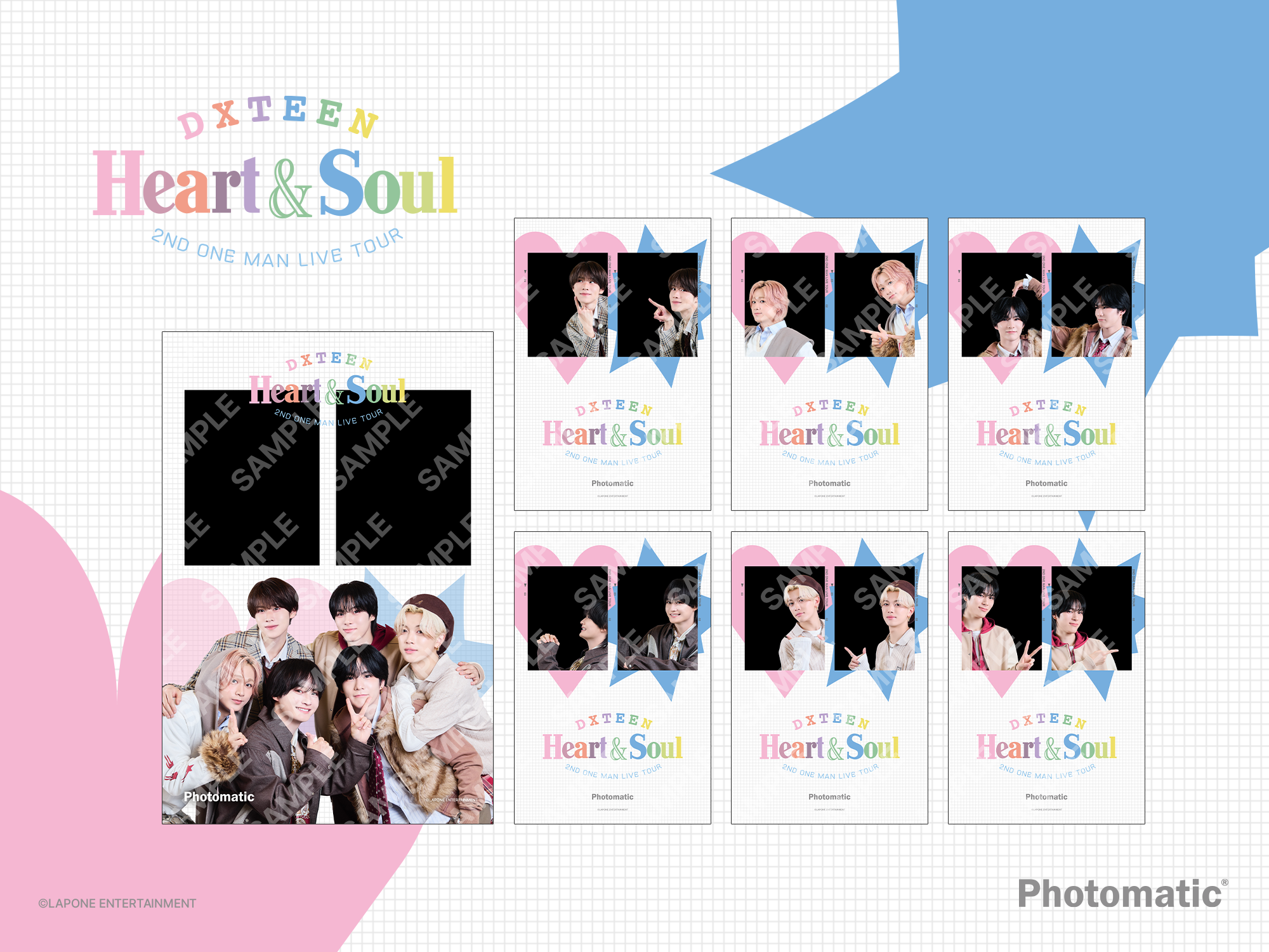 今回は、「2026 DXTEEN 2ND ONE MAN LIVE TOUR 〜Heart & Soul〜」開催を記念し、彼らのより洗練された表情を収めた全7種の限定フレームを展開いたします。さらに、フラッグシップショップであるPhotomatic 渋谷 道玄坂店では ツアーの世界観を感じられる店舗装飾を実施。