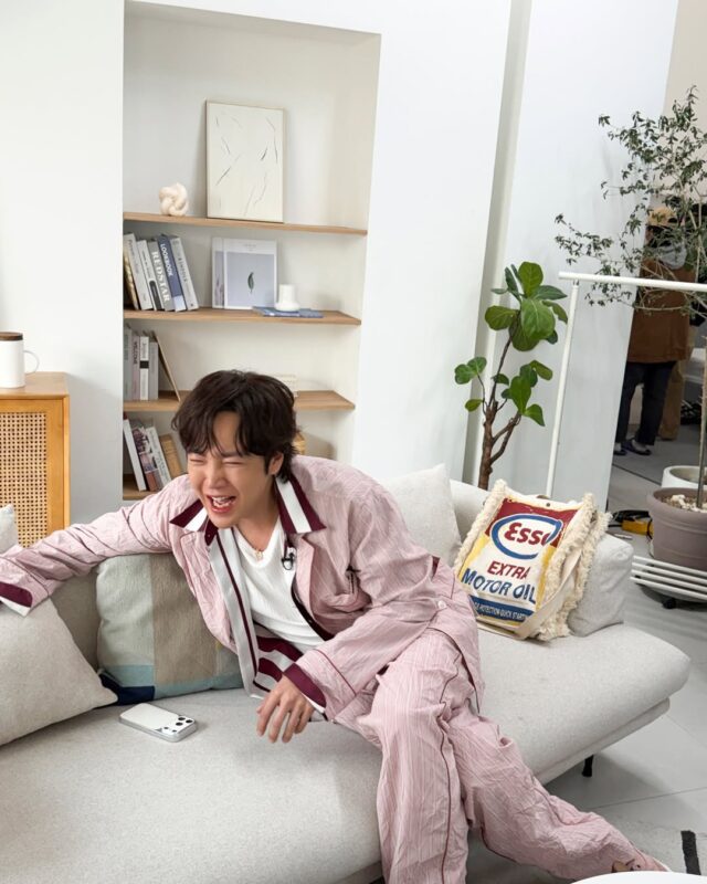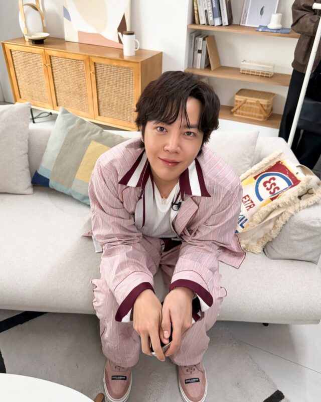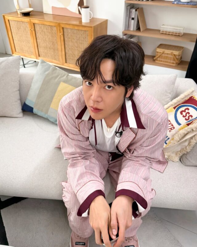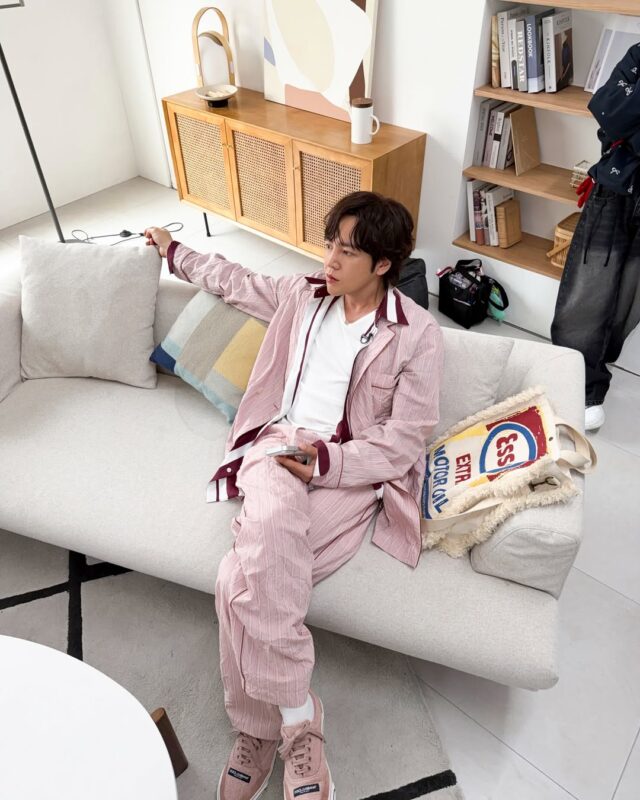 写真には、ピンク系のパジャマを着たチャン・グンソクの姿が収められている。