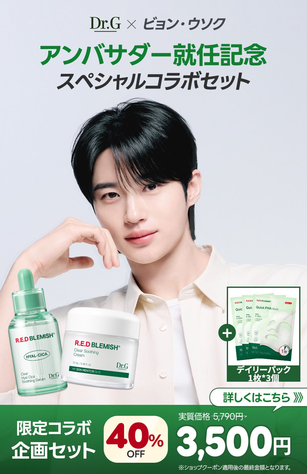 Qoo10では、ビョン・ウソクさんのグローバルアンバサダー就任を記念したお得なセットをご用意。4月13日(月)〜4月30日(木)限定で、<レッドブレミッシュ クリアスージングクリーム>と<レッドブレミッシュ ヒアルシカスージングセラム>のセットをお買い上げの方に、<レッドブレミッシュクイックPHAシートマスク(3枚)>をプレゼントします。