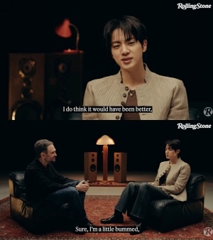15日に公開されたアメリカの音楽メディア「ローリング・ストーン」のYouTubeインタビューで、Jinは「まず、メンバーたちにすごく会いたかったです。会えなかった時間の分、この1年間一緒に仕事をしながら時間を過ごした気がしますが、メンバーと一緒にいる時が一番心が安らいで幸せだということを、改めて感じさせてくれた時間でした」と明かした。