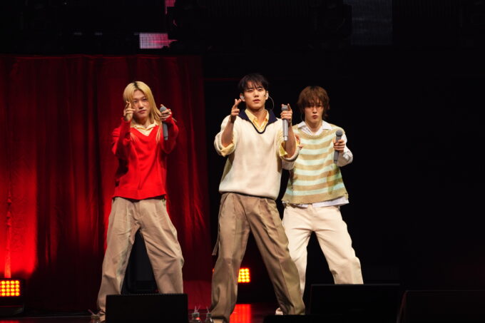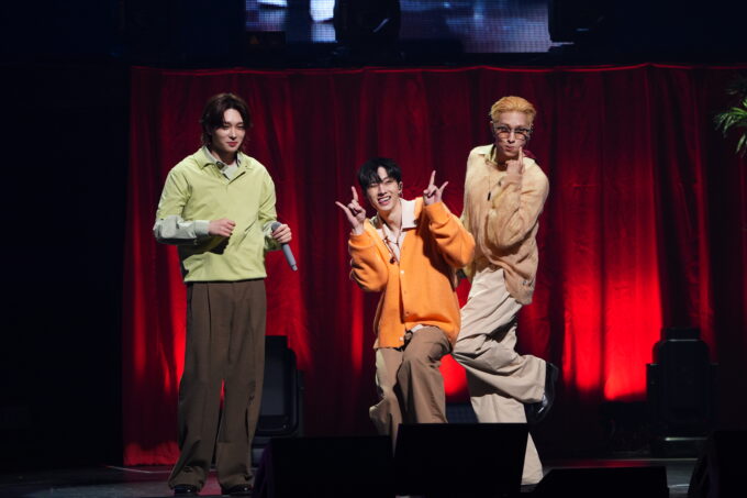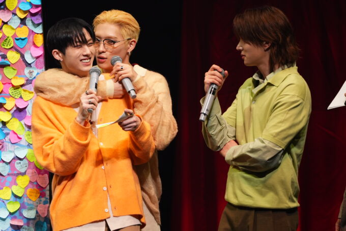 そして罰ゲームの“胸キュンセリフ”の時間へ。THEOは「責任とってよ、好きにさせたんだから」と甘い一言で会場を沸かせる。KEEHOは「ねーぎゅとしてー(ねえ、ぎゅっとして)」と早口で言うが、イントネーションに苦戦し、思わず笑いが起こる場面に。SOULの指導や古家のお手本を受けながら再挑戦するも、なかなか思い通りにいかず、会場は始終、笑い声にあふれた。
