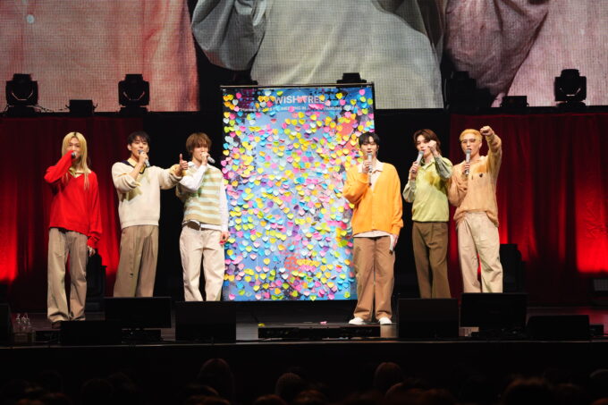 THEOは願いが書かれたポストイットを手にすると、「日本でもやらないわけにはいかないので」と、ドラマ「婚礼大捷<こんれいたいしょう>-愛を結ぶ二人-」のOST「Half of My Heart」をアカペラで披露。甘い歌声で会場を優しく包み込んだ。最後は「“よく頑張ってるよ”と言ってほしい」という願いに対し、メンバー全員が日本語で「頑張ってるよ」とファンへエールを送り、温かな余韻を残した。