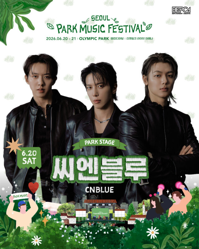 公開された写真には、「ソウル パークミュージックフェスティバル」のロゴとともに「CNBLUE」の姿が収められている。