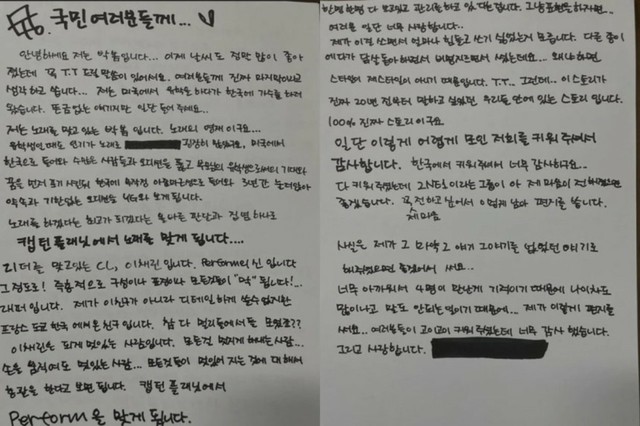 BOMは17日、自身のSNSに「本当に最後だと思って書く」として、直筆の手紙の写真を公開した。