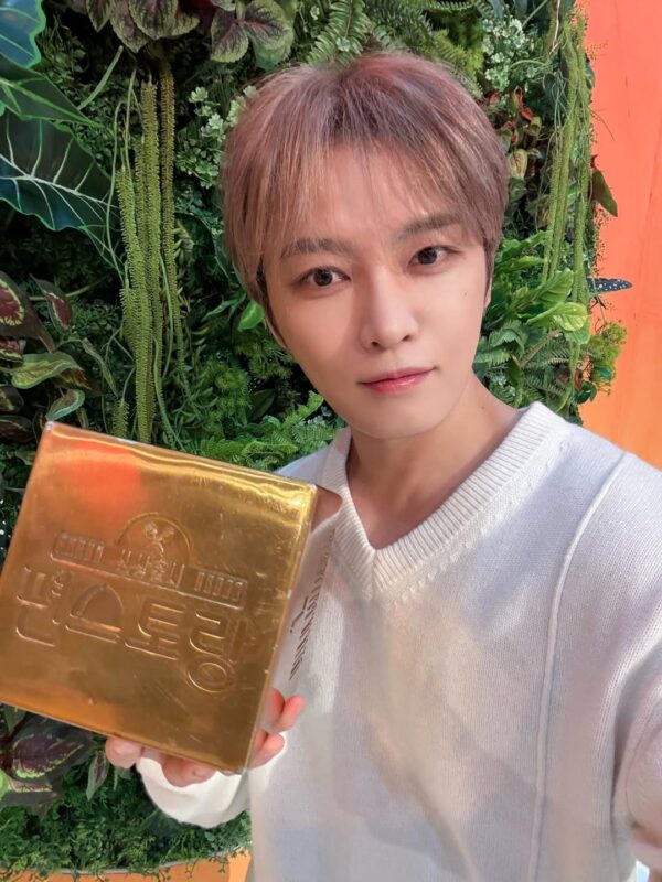 写真には、「コンビニレストラン」の優勝の盾に口づけしているジェジュンの姿が収められている。