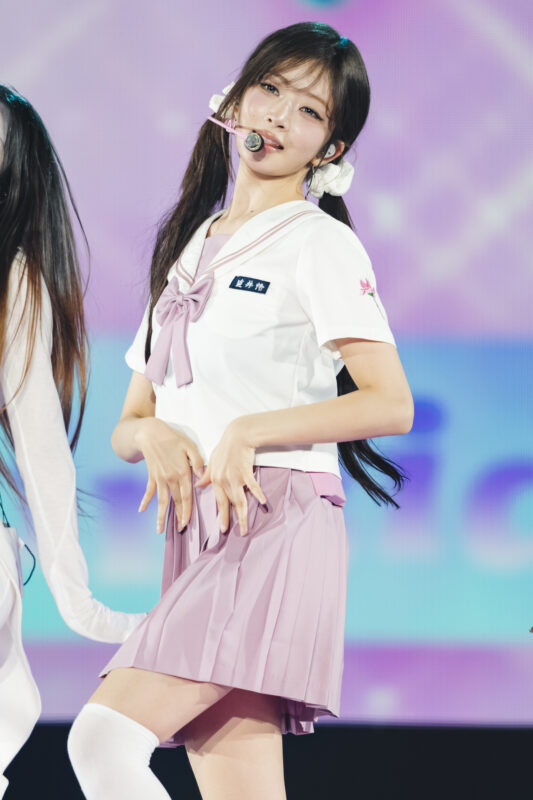 間髪を入れずに披露した「XOXZ」「Baddie」 といったナンバーでは、 タイトなリズムとクールなラップで独自の美学をアピール。 さらにシンセサイザーのアルペジオに導かれるように歌う「Ice Queen」、 シャッフルビートを軸にしたサウンドで消滅と誕生が共存する世界 観を表現した「BLACKHOLE」と、 開幕からわずか数曲で会場をIVEだけのカラーに染め上げる力量 に驚いてしまう。