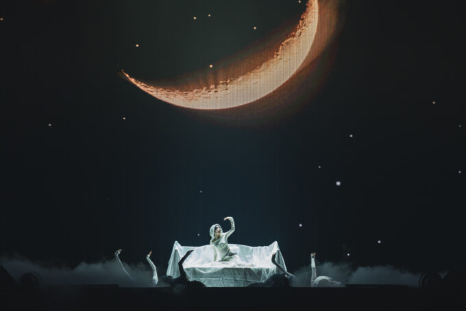 6人の明るい第一声に反応して客席では大きな声援が飛び交う。 短い挨拶を終えると、ブラスセクションの音が合図となって「 TKO」がスタート。通称“808(ヤオヤ)” と呼ばれるレトロなリズムマシンを使ったトラックに乗りながら歌 い踊った後は、トライバルなムード満載のダンスポップ「Holy Moly」、チェスの巨大な駒をバックに妖艶なしぐさで「 私と一緒に来て」と誘う「My Satisfaction」と、 インパクトのあるナンバーを連発した。