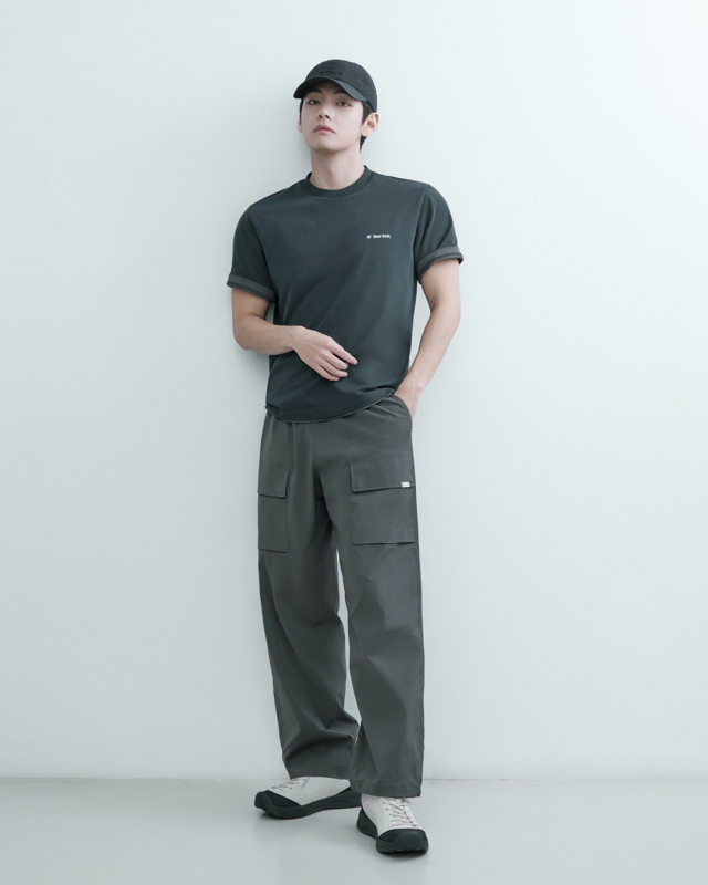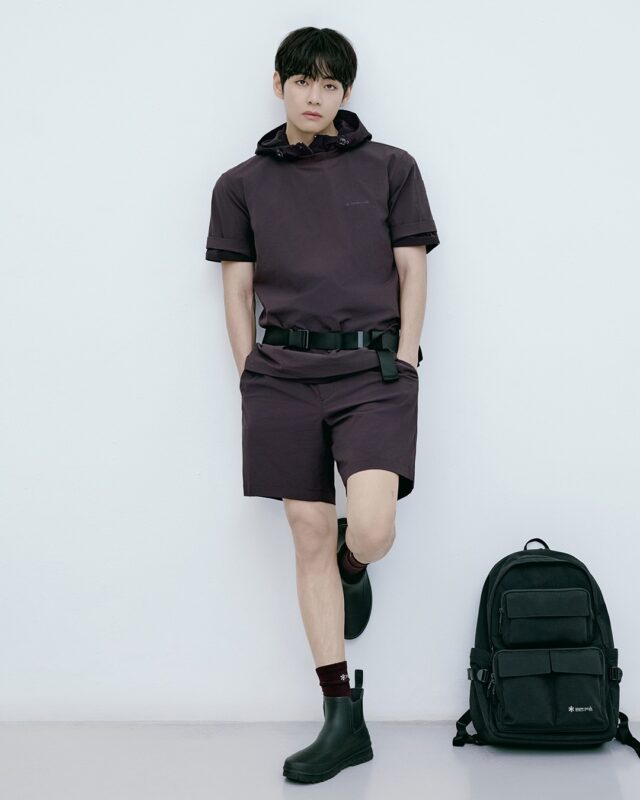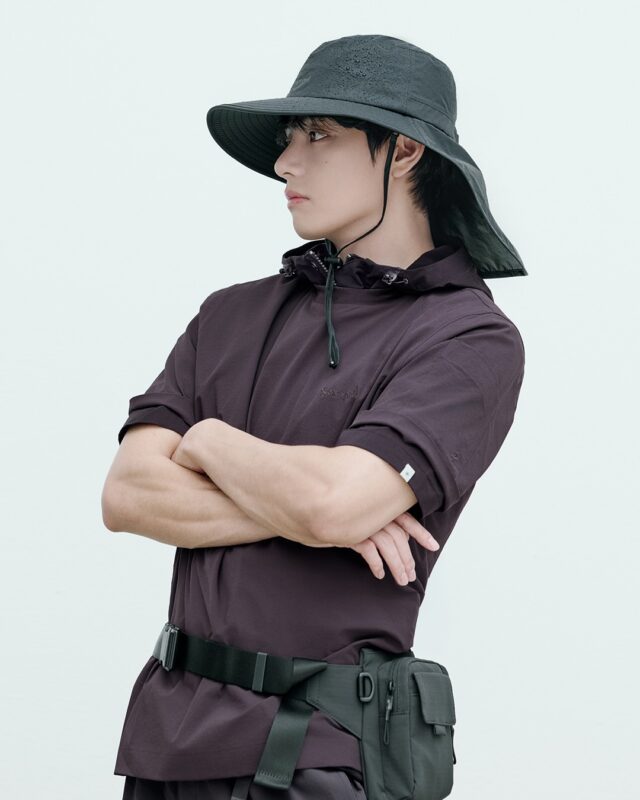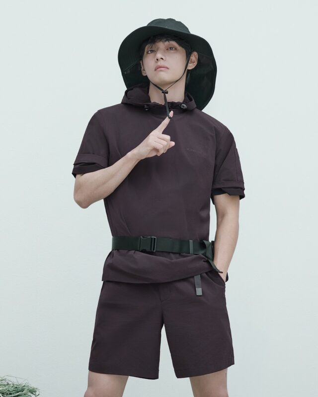 Vはまた、ハットやキャップの似合うファッションも披露して幅広いセンスを見せている。