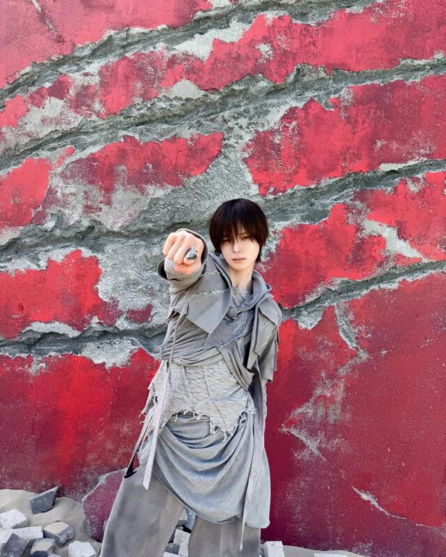 写真には、オールブラックの衣装に身を包んだKの姿が収められている。