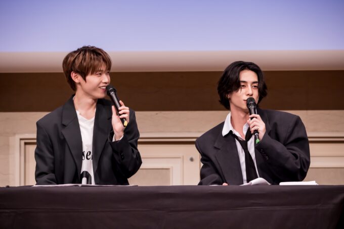 前半は木村柾哉・尾崎匠海・髙塚大夢・田島将吾・西洸人・松田迅が、『PULSE』収録曲の「OURS」「DUM」についてトーク。歌詞に込めた思いや制作の流れ、好きな歌詞などを語りつつ、会場では一部先行して楽曲を聴けるというサプライズにMINIも大盛り上がりでした。続く後半は、池﨑理人・後藤威尊・佐野雄大・許豊凡・藤牧京介へバトンタッチ。長丁場の収録ということで、藤牧が「皆さん立ってください!身体伸ばしてください!みんな体操しましょう」とステージに出てくるやいなや、リスナーにリフレッシュがてらストレッチと深呼吸を促します。