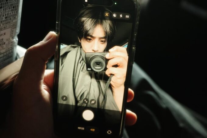 公開された写真には、カメラを持っている自身の姿を写したスマホが収められている。