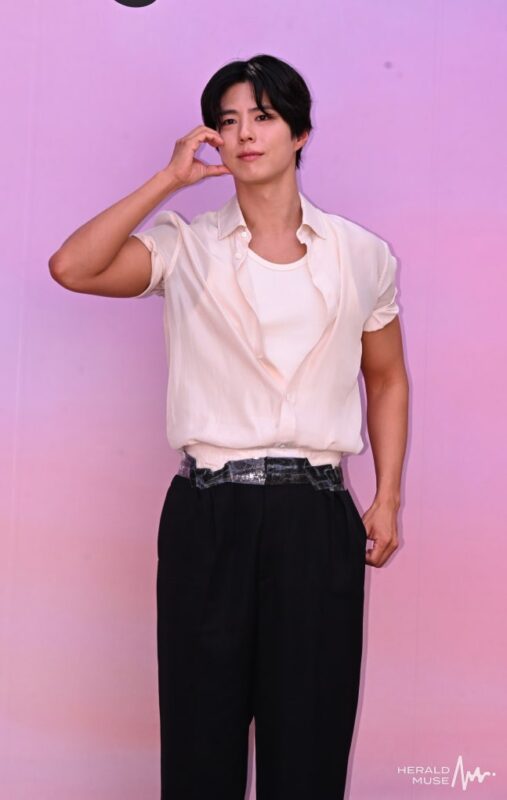 23日午前、俳優パク・ボゴムと「IVE」のチャン・ウォニョンがソウル・ソンドン(城東)区ソンスドン(聖水洞)にて、ダイソンコリアのヘアデバイス発売を記念した「スーパーソニック トラベル ラウンジ」ポップアップストアのオープン記念イベントに出席した。