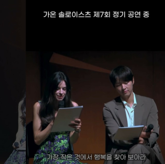 そして22日、ガオン・ソロイスツの公式SNSには、夫婦のナレーションシーンが収められた映像が投稿された。舞台上に並んで座った2人。ケイティさんは英語で、ソン・ジュンギは韓国語で文章を読んだ。