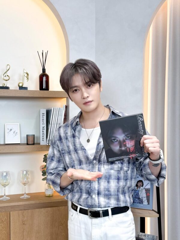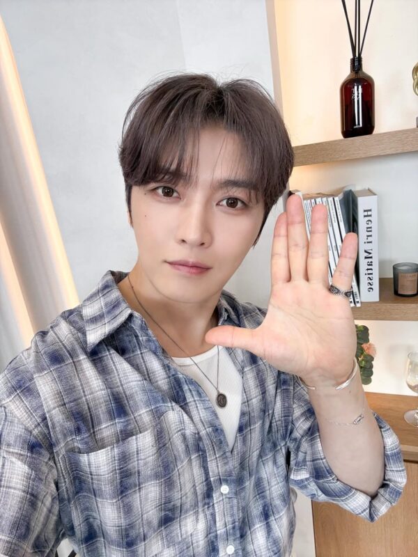 写真には、チェックのシャツを着たジェジュンの姿が収められている。