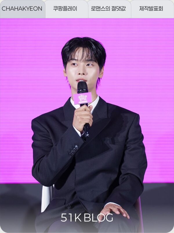51Kエンターテインメントは24日、公式SNSに「CHAHAKYEON(チャ・ハギョン)クーパンプレイ『ロマンスの絶対値』制作発表会。完ぺきに仕上がったスーツ姿を披露した【チャ・ハギョン】(🔗リンクはストーリーでご確認いただけます)」というコメントと共に写真を掲載した。