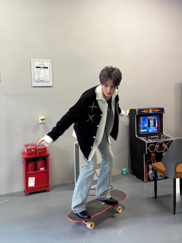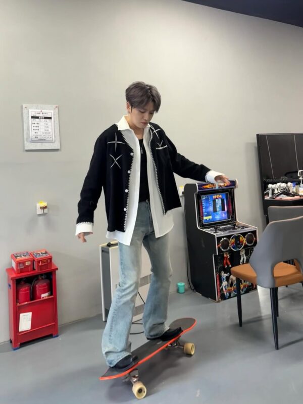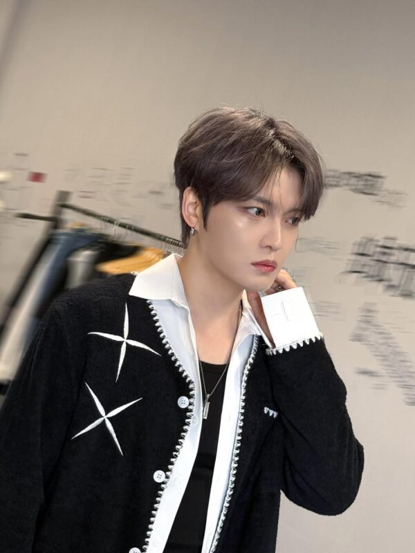 写真には、ホワイトとブラックのツートーンのジャケットを着たジェジュンの姿が収められている。