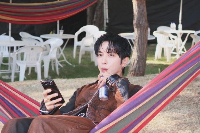 公開された写真には、木陰で休息するヨンファの姿が収められている。