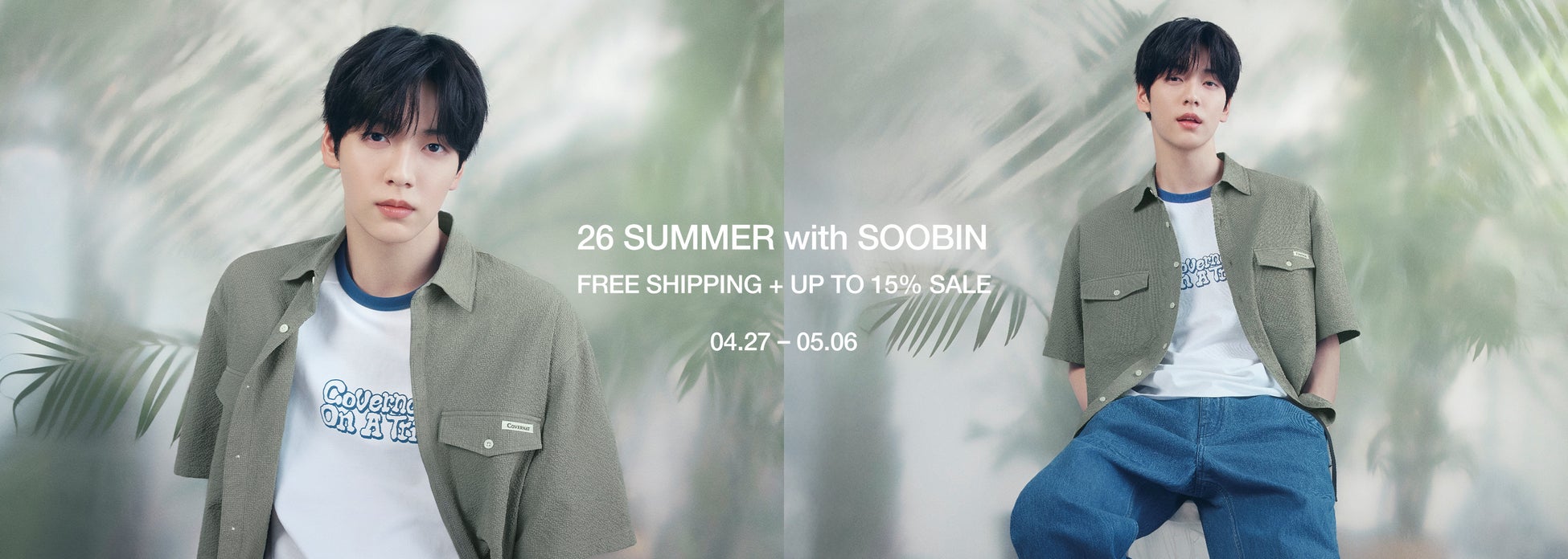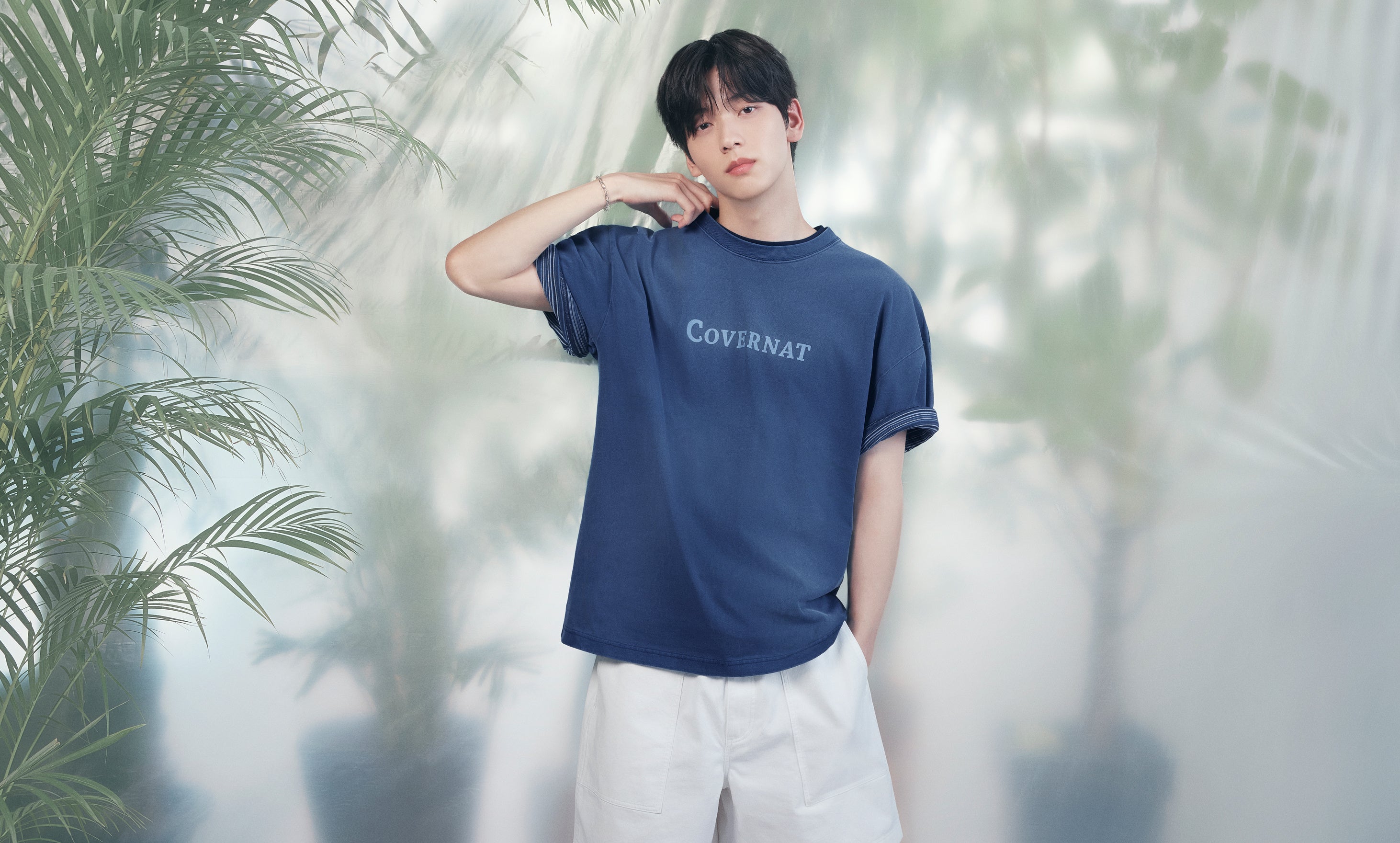 SOOBINのやわらかく自然体な存在感は、そうしたルックの魅力をより引き立て、リラックス感のあるスタイリングにさりげない印象の強さを添えています。緑に包まれた空間の中で完成した本ルックブックは、Covernat(カバーナット)が提案するシティボーイスタイルを、夏ならではの空気感とともに映し出したビジュアルに仕上がっています。