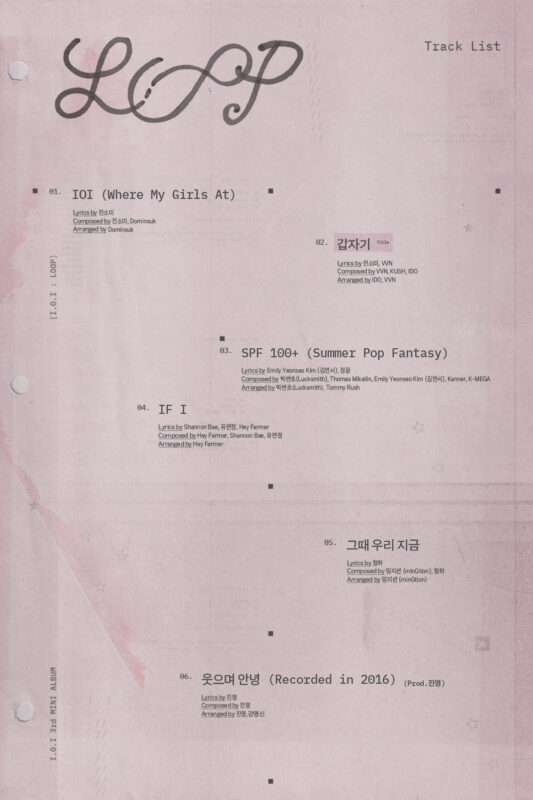 「I.O.I」は27日0時、公式SNSチャンネルを通じて3rdミニアルバム「I.O.I : LOOP」のトラックリストイメージを公開した。