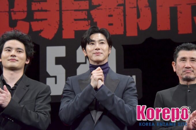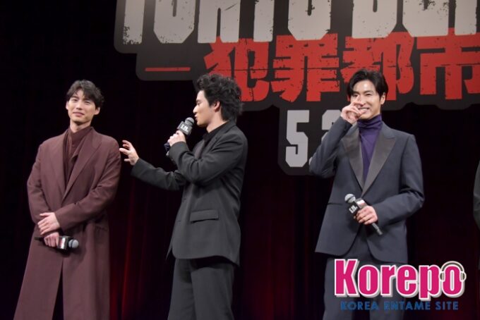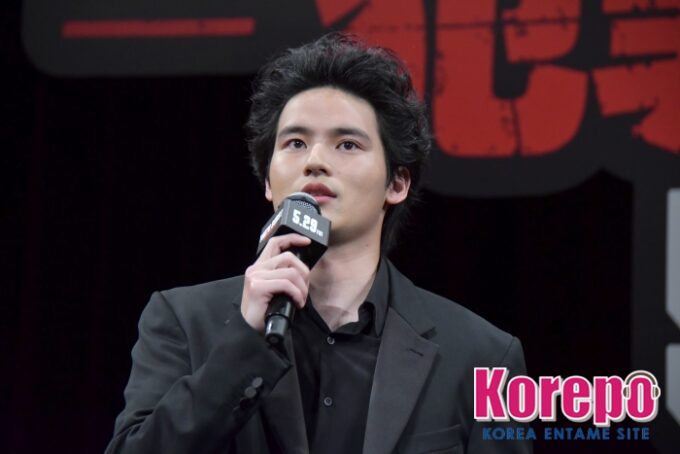 そして、犯罪集団のボス・村田蓮司役を演じた福士蒼汰は「マ・ドンソクさんをはじめ映画『犯罪都市』には体格のいい人がたくさん出ていたので、僕も負けないぐらいデカくなろうと意気込んで、この作品に挑みました」と、本作の撮影のために15kg増量したと話し、観客を驚かせた。