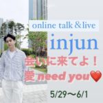 インジュンの誕生日(3/9)以来となるオンラインイベントの配信が決定! 今回は、ファンの方にオンラインで何をやってほしいかを本人がSNSでアンケートをとり、「歌が聴きたい!」「インジュンのトークが聞きたい!」「ファンミーティングがいい!」というたくさんの意見をまとめて全部詰め込んだ『Talk&Liv…