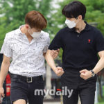 2PMが8日午後、ソウル市モクドン(木洞)SBSで行われるラジオパワーFM「2時脱出カルトショー」に出演した。 JUN. K(左)、ジュノが並んで放送局に向かっている。 JUN. Kが一緒にポーズを取るためにジュノの腕をつかもうとする。 JUN. Kがジュノと談笑しながら自然いジュノの腕をつかもうと…