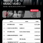 BTS(防弾少年団)が、3週連続で週間K-POPレーダーチャートのトップを獲得した。 BTSの「Butter」のミュージックビデオは、K-POPレーダーの23週目の集計期間(5月30日〜6月5日)の間に再生数5,171万回を記録して3週連続で1位を維持した。 これにより「Butter」のミュージック…