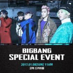韓国男性グループ「BIGBANG」が2017年1月8日「BIGBANG SPECIAL EVENT」を開催する。 来年1月7日と8日のソウル・高尺(コチョク)スカイドームにて「BIGBANG10 THE CONCERT : 0.TO.10 FINAL IN SEOUL」を通じて、10周年プロジェクト…