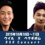 心底を鳴らすR&Bの魅力ヴォイス、WOOIL(ウイル)、パワーフールでフレッシュな音色、ミュージカル界のダークホース、ぺク・ギボム、二人のデュオコンサートがいよいよ決定しました! 夢のようなラグジュエリー・ハーモニー、ぜひ、体験して下さい! ■日 程 : 10…
