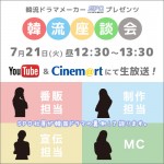 韓流業界関係者・韓流ファンに生の声を届けたい! 韓流に関心がある全ての人々に話題を提供していきたい! 「韓流座談会」YouTube生放送実施! <Cinem@rt (シネマート)」にて7月21日(火)YouTube生放送実施!> アジアエンタメ情報満載のサイト「Cinem@rt(シネマ…