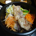 仁寺洞(Insadong)エリアの小道を入ったところにあった隠れ家レストラン「三清花(Samcheonghwa)」の食事メニューをご紹介します。 まずは、私が注文したメニューです。 店頭にも大きな看板が置いてあって宣伝していたサムギョプサルの石焼ビビンパ(Pork Samgyeopssal Bibi…
