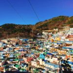人気の観光地になりつつある、韓国のマチュピチュ「甘川文化村」。 写真を見ると山奥にあるようなイメージがありますが、実際には、韓国第二の都市、釜山からすぐのところにあります。 一番簡単なアクセス方法は、地下鉄1号線の土城(トソン)駅で降りて、マウルバスの1号か2号に乗ります。 そして「カムジョン小学校…
