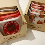 オリオンの高級チョコパイ「チョコパイハウス」。 明洞のロッテデパート地下やソウル駅のロッテマートでも 購入できるようになって手軽に買えるのでお土産に買ってきました こちらはレギュラーフレーバー 白)オリジナル 赤)レッドベルベット 茶)キャラメル こげ茶)コーヒー そしてこちらは期間限定フレーバー!…