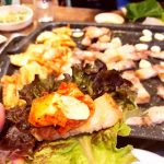 東大門でナイトショッピング前にお友達とお夕飯 スタミナ付けましょっとサムギョプサルを食べましたっ! キムチチゲ・キムチサムギョプサルのキムサムボ キムサムボは鍋物(汁物)を頼むと セットで付いてくる釜炊きのご飯が人気 お鍋メニューは ・キムチチゲ ・キムチプデチゲ ・キムチチャムチチゲ ・キムチチュ…